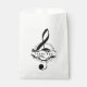 Un sac de faveur pour les musicalement inclinés, avec une clef triphe et un motif de notes musicales répétitives circulaires. Le texte dit "merci".