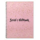 Notebook shown with a graphic of petite stars in golden on a pink background with the phrase " Bride's Notebook". Customize this item and change the name to yours or take off the name, change the star colours in filter, background colour or buy as is. Golden, Pink and Black colourings.