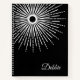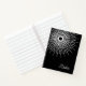 This college lined notebook is shown in a black and white abstract art print with a custom name sample.