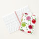 This notebook is shown in a regular shape with lined pages in a cute apples print design.