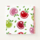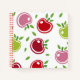 This notebook is shown in a square shape with lined pages in a cute apples print design.