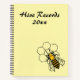 Yellow and black Bee sitting on honeycomb. Image angled into lower corner. Text on front cover - Title: "Hive Records" and Year: "20xx" Text on back cover shows bee keeper's name and business address. Background in light yellow.