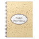 Shown in a light Champagne colour with golden petite stars, this notebook features an oval with coordinating coloured borders along with your personalized name inside the oval. Text shown in Chocolate Brown. Customize to your desires or buy as designed.