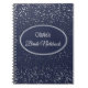 Notebook shown with a graphic of petite stars in silver-grey on a midnight blue background with the phrase " Bride's Notebook" encircled by an oval with borders of coordinating colours. Customize this item and change the name to yours or take off the name and buy as is. White, Silver-grey and midnight blue colourings.