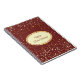 This notebook shown in Burgundy with golden petite stars, an oval in Ivory with coordinating borders in Merlot and Marigold. Burgundy text. Customize this item.