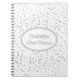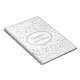 This notebook is created in white with petite silver-grey coloured stars all over the front behind an oval in white with coordinating borders of silver-grey colour. Your personalized name in centre of oval along with "Bride Notebook" for you to customize. Coordinates beautifully with the wedding guestbook to match.