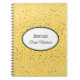 Petite stars in silver-grey grace the cover of this custom name bride's notebook. Shown in a bright Sunflower Yellow with a white oval and coordinating border colours of Black and Celery Green along with fun and fanciful text of your personalized name in centre and the phrase "Bride Notebook" in Black. Customize this item.