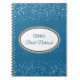 Notebook shown with a graphic of petite stars in grey on a periwinkle background with the phrase " Bride's Notebook" inside an oval shape with coordinating borders of grey and black. Customize this item and change the name to yours or take off the name, change the star colours in filter, background colour or buy as is. Grey, White, Cerulean and Black.