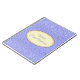 Notebook shown with a graphic of petite stars in grey on a periwinkle background with the phrase " Bride's Notebook" inside an oval shape with coordinating borders of peach and white. Customize this item and change the name to yours or take off the name, change the star colours in filter, background colour or buy as is. Grey, Ivory, Periwinkle, Peach.