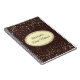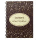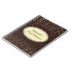 Notebook shown with a graphic of petite stars in golden on a Bordeaux background with the phrase " Bride's Notebook" inside an oval shape with coordinating borders of neutral brown and taupe. Customize this item and change the name to yours or take off the name, change the star colours in filter, background colour or buy as is. Golden, Ivory, Bordeaux and neutral colourings.
