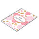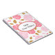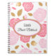 Notebook shown with a graphic of pretty pink roses on a white background with the phrase " Bride Notebook" inside an oval shape with coordinating borders. Customize this item and change the name to yours or take off the name.