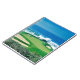 Notebook is shown with a photo print of a beautiful golf course at ocean side.