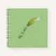Feather pen. "My Scribbles" is written in script at an angle from the lower left corner of binder front (text may be changed). The writing implement is a feather with various shades of green, from dark to light. Background is light green.
