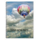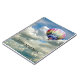 Rainbow coloured Hot Air Balloon is flying high in the fluffy white clouds in a blue sky.