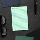 Mint green sticky notepad with a notebook paper aesthetic with blue lines. Add your name and initial at the top in a pencil-grey elegant font. Legal pad inspired personalized notepad with blue lines and your name and initial inspired by the dictionary aesthetic.