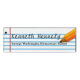 School teacher's custom name tag done in a white, with blue ruled notebook paper looking background. Clip art of then end of a pencil, decorates the right side of the name tag. Two areas of black text are ready to personalize for your needs.