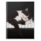 Notebook shown with a photo print of a cute kitten sleeping on the piano. Customize this item or buy as is. Stock Image