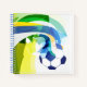 This notebook is shown in a square shape with wide ruled pages in a art print of a soccer ball.