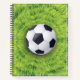 This notebook is shown in a regular shape with college rule pages in a art print of a soccer ball.