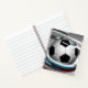This notebook is shown in a regular shape with college rule pages in a sports soccer ball art print.