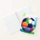 This notebook is shown in a regular shape with college rule pages in a sports soccer ball art print.