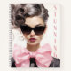 Make a bold statement with this personalized notebook, featuring a fashion-forward illustration on the front cover. The model, with sleek platinum hair, dramatic dark sunglasses, and pouty lips, exudes a sense of high-fashion sophistication. A striking pink bow at her neck adds a playful touch, while the expressive watercolor brushstrokes give the design a sense of movement and energy. The back cover is a sleek dark grey, creating a stylish contrast for your personalized text in crisp white font. With plenty of space for longer first names, this notebook is the perfect gift for fashion enthusiasts, beauty professionals, or anyone who loves custom, chic accessories.