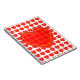 Large translucent red heart with background of small three dimensional red hearts replicated in rows.