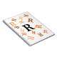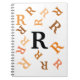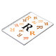 Letter of your choice in oranges. Currently the letter "R" is shown. A large central letter in black is surrounded by four slightly smaller letters, and ten even smaller letters are jumbled around the central letter and show in various shades of orange and brown.