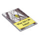Bird with head turned in questioning manner. Yellow breast and beak stand out amid grey branches and blurry grey sky. Yellow band holds text "What did I do Today?".
