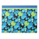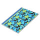 A large Notepad or Jotter, with a 'Blue Moons' abstract pattern in bright blues and neon green on a black background; from a handpainted paper collage design by Judy Adamson.