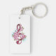 Clé rose treble avec fines fleurs de cerisiers japonais roses et détaillés contre arrière - plan blanc peint avec peinture bleu clair. Sakura rose fleurissant.