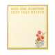 Capture your thoughts with charm and grace using this elegant cream notepad, beautifully framed in gold and adorned with a delicate wildflower arrangement of red, orange, and purple blooms with soft greenery in the bottom corner. The customizable header reads “Notes • Ideas • Suggestions from your mother”—perfect for gifting to moms or personalizing for your own use. All text areas can be fully customized, allowing you to change the wording, font, or colour to suit your personal message or branding. A timeless and thoughtful addition to any desk, kitchen counter, or family command centre.