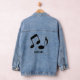 Notes musicales Design à l'arrière de cette Veste Denim avec du texte personnalisable pour changer ou supprimer. Sélectionnez votre taille appropriée dans le menu déroulant.
