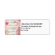 Étiquette de adresse avec un design élégant et nostalgique. Partition décorée d'un grand coeur rose et de roses roses roses et de fleurs sauvages aux bords.