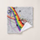 Notes musicales noires flottant sur un arc-en-ciel de couleurs de tourbillonnement d'arc-en-ciel. L'arrière - plan est les notes musicales grises sur une nuance plus légère.