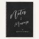 Minimalist black background, with modern script typography "Notes and Musings" to inspire your creative ideas and thoughts, personalized with your name on the front and your monogram with name on the back. Add your own information by following the "Personalize this template" link.