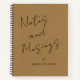 Gold notebook, with delicate black script typography "Notes and Musings" to inspire your creative ideas and thoughts, personalized with your name on the front and your monogram with name on the back. Add your own information by following the "Personalize this template" link.