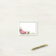 Cette décoration florale est composée d'un ensemble de pivoines dans des tons roses variés. Décoré de feuillage vert, ce dessin se trouve dans le coin inférieur gauche du Post-it®note. La bordure verte finit la conception, que vous pouvez customiser avec un nom ou laisser vide.