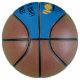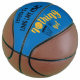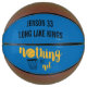 Full size personalized basketball in blue and yellow. The design features the basketball quote "nothing but net", illustrated with a basketball and net. You can add your name, jersey number and team or custom text, which is printed in black uppercase typography. It has a colour palette of blue, black and yellow. Please browse our store for more basketball gifts.
