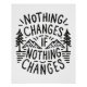 Nothing changes if nothing changes poster motivational quotes. Cabin life aesthetic decor black and white retro vintage lettering with forest and mountains illustration. Be the change, take action, growth mindset and motivation to stop procrastinating.
