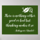 It's all a matter of perspective, as the brooding prince Hamlet finds, when Rosenkranz and Guildenstern find delight in Denmark and he sees only gloom. Cheer up, Hammy! Here's a gorgeous green design with leaf flourish and handwriting script text. You can even personalize it and change the quote to a different one if you want. Green is a colour of confidence, balance and creativity. The opposite of red (Mars), in relates to the female warrior. Green corresponds to growth, nurturing, strength, nature and the environment. Green is a colour of teachers and innate natural wisdom. Any way this inspiration quote is sure to bring a smile.
