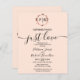 A simple chic foliage rose gold foil monogram peach rose wedding invitation. Easy to personalize with your details. Modern boho wedding invitation editable, wreaths photo wedding invitation, customizable, calligraphy handwritten font, simple, elegant.