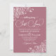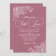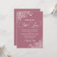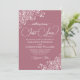 This beautiful wedding invitation is simple, modern, elegant, and fun. It features a beautiful dusty rose or mauve pink and white design with lacy curls and swirls in the corners, and modern script lettering spelling out: Nothing Fancy, Just Love. Romantic, classy, and glam, yet whimsical and joyful, this wedding invitation is perfect for either a casual or formal ceremony.