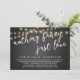 Announce your happily ever after in style (Nothing Fancy, Just Love) with our modern rustic grey chalkboard cottage string lights design wedding elopement celebration invitation card. Our Happily Ever After Party Celebration Invitation card is ideal for couples who have decided to elope and want to host a party to celebrate their union. With its sophisticated yet playful design, this invitation is sure to set the tone for an unforgettable event. The invitation card features a minimalist rustic elegant design scheme, adding a touch of timeless elegance to your celebration. Designed by TeeshaDerrick