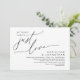 Mark the beginning of your forever with elegance using our romantic contemporary black and white themed wedding elopement happily ever after dinner party celebration invitation card, "Nothing Fancy Just Love". Perfect for couples extending their joyous occasion, this invitation exudes sophistication with a hint of playfulness, setting the stage for a memorable event. Adorned with a timeless modern script design theme, it adds a touch of refined charm to your festivities. Crafted by TeeshaDerrick, this invitation promises to beautifully capture your love story.