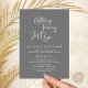 Announce and share your happily ever after in style with our modern dark grey theme design (Nothing Fancy Just Love) wedding elopement celebration invitation card. It is ideal for couples who have decided to celebrate their best day. With its sophisticated yet playful design, this invitation is sure to set the tone for an unforgettable event. The invitation card features a modern and minimalist script design theme, adding a touch of timeless elegance to your celebration. Designed by TeeshaDerrick