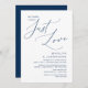 Elegantly announce your happily ever after with our modern romantic navy blue themed wedding elopement celebration invitation card, "Nothing Fancy, Just Love". Tailored for couples continuing their love story, this invitation strikes a perfect balance of sophistication and charm, setting the scene for an unforgettable event. Featuring a modern contemporary script design, it adds a touch of timeless grace to your special day. Designed by the talented TeeshaDerrick, this invitation is a stylish expression of your enduring love.