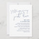 This is the wedding elopement party invitation card, with minimalism / minimalist script classy Navy Blue design (Nothing Fancy, Just Love)