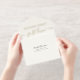 Elegant light cream elopement or private wedding announcement and casual reception all-in-one invitation featuring "Nothing Fancy Just Love" showcased in a blend of simple lettering and a chic script with swashes, your marriage announcement and reception invitation, and your RSVP response card, all rendered in your choice of real gold, silver or rose gold foil.
