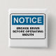 NOTICE ENGAGE BRAIN BEFORE OPERATING MOUTH 2 INCH SQUARE BUTTON